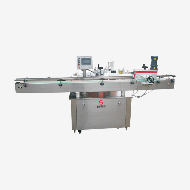 站立的瓶子经理瓶机将瓶子有序排列,依次进入输送带,并运送到贴标位置,测标电眼即向送标器发出标信号,瓶子经出标板处被贴上标签,卷瓶带转动瓶子将标签卷贴在瓶子圆周面上,当测标电眼检测到标签尽头向送标器发出停止信号,贴标完成,同时标签底纸回卷。贴标后的瓶子进入托盘内或后一道工序。